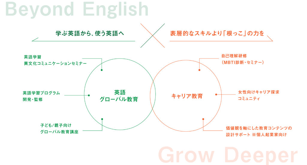 自己理解・内省・思索の場を提供し、個人が自分の価値観に根ざした生き方とキャリアを育てる支援を行います。
